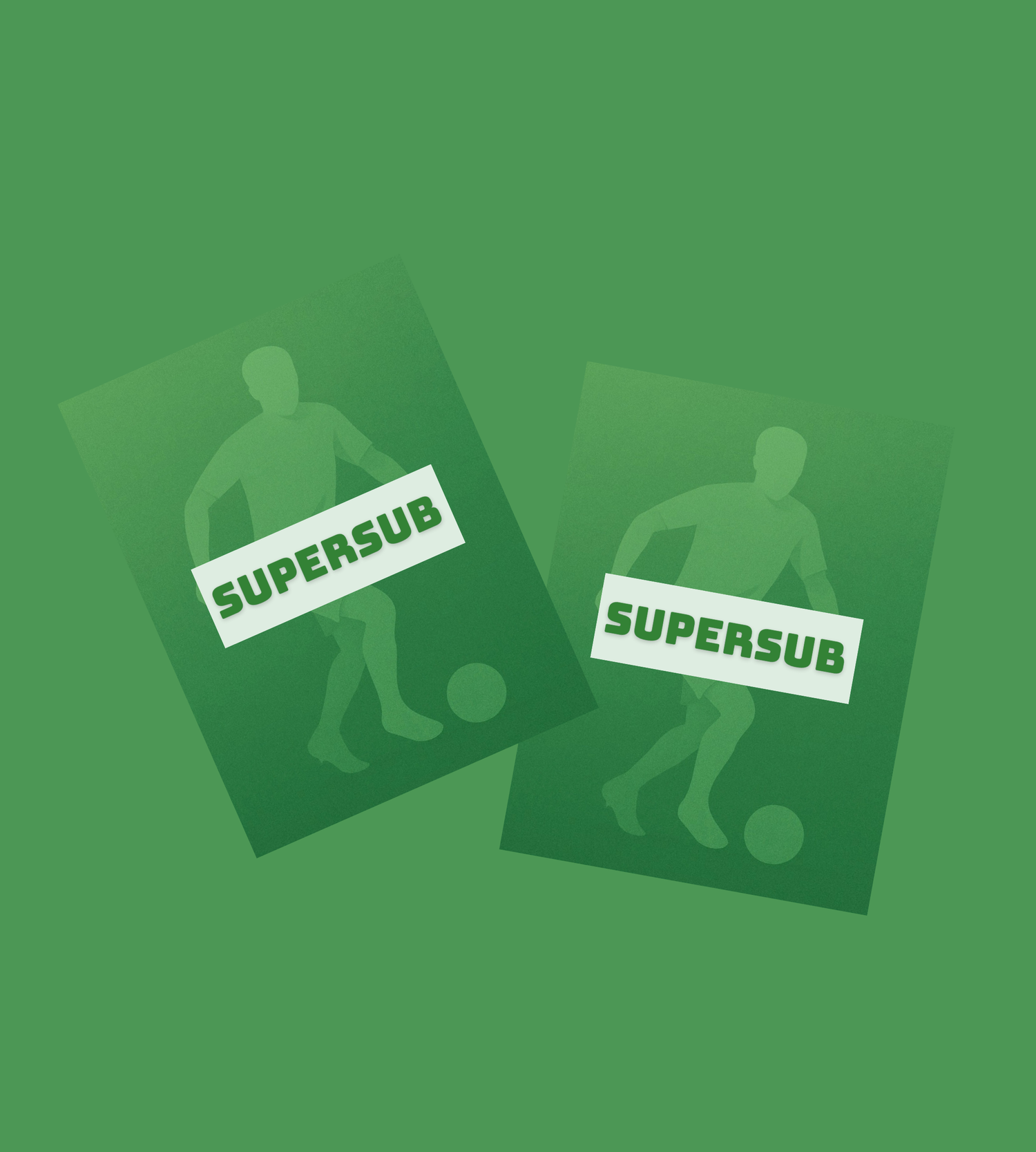 Varje spelare börjar med två Supersub-kort som kan avgöra hela matchen. Med ett Supersub-kort kan du antingen skippa ett svårt kort för att rädda din egen runda, eller sätta press på en motståndare som fått det lite för enkelt. Det gäller att använda dem vid rätt tillfälle, för när Supersuben är slut finns ingen räddning kvar. Precis som på planen kan en enda smart inbytt spelare förändra allt.